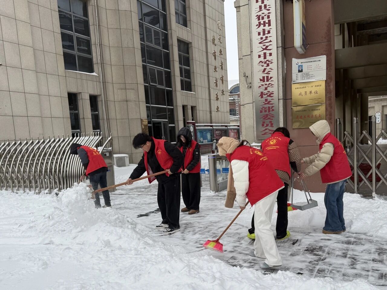 黨旗映雪暖校園 師生協(xié)力護(hù)平安——宿州藝文中專積極組織開展掃雪除冰行動(dòng)